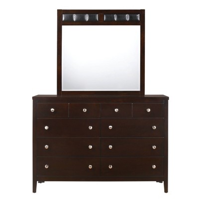 The finish adds richness and warmth to the room while highlighting a stylish combination of traditional and contemporary detail. The frame is constructed of wood and inlayed with woven can. The bradley collection dresser and mirror add a contemporary twist to a traditional design and complements the "handcrafted in virginia" quality. The dresser is a cherry wood and i got the espresso color bookcases. The dresser features an ample storage area, slightly curved legs, and an easy metallic drawer slide system. Patina colored dresser is finished with classic hardware. The versatile function and transitional style of the double dresser make it an excellent choice for your baby nursery. Interior dimensions at bottom of drawer: Give any dining area a contemporary spin with the ciara collection. Crafted of wood solids and okueme veneers with a rich espresso finish, a handsome black tempered glass insert on the 42 round table top is nicely balanced by the clean lines and sharp angles of the table base. X 36 in h.) classic wooden dresser featuring six drawers classic wooden dresser featuring six drawers for maximizing bedroom storage. It features a table with a 48 inch round glass top supported by an espresso finished base. Buyers piled the dresser for the great appearance.